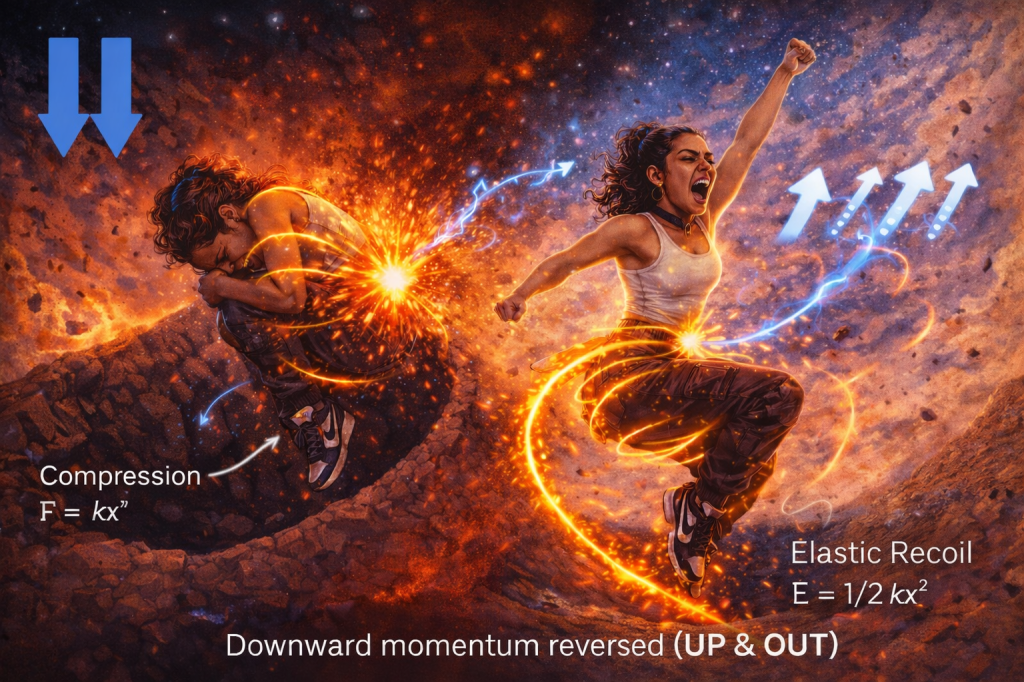 [💥Impulse ⬆️ + Torque @ edge ⤴️ + LEAP = ⤴️⬆️ Downward momentum reversed (UP & OUT)